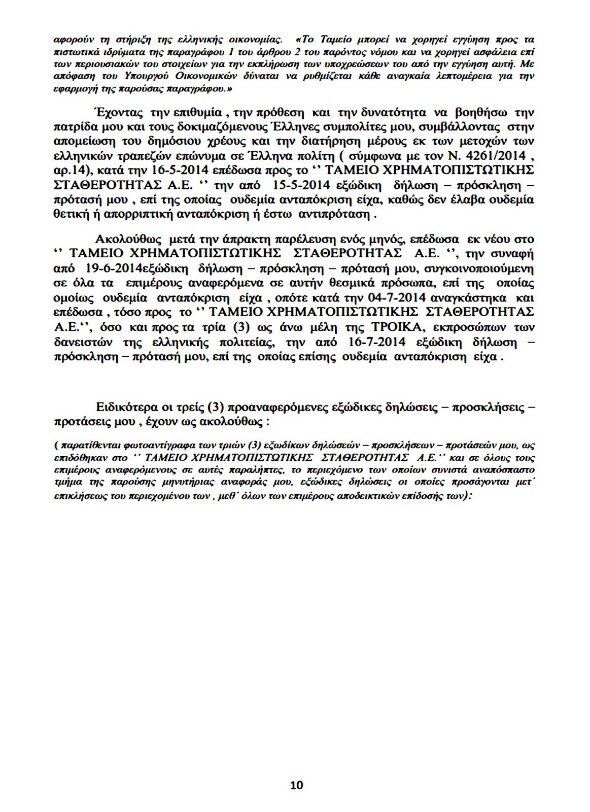 ΕΤΣΙ ΣΤΙΣ 6-8-2014 Ο ΑΡΤΕΜΗΣ ΣΩΡΡΑΣ, ΚΑΤΑΘΕΤΕΙ ΜΗΝΥΤΗΡΙΑ ΑΝΑΦΟΡΑ ΣΤΟΝ ΕΙΣΑΓΓΕΛΕΑ ΠΡΩΤΟΔΙΚΩΝ ΑΘΗΝΩΝ ΔΗΜΗΤΡΙΟ ΠΙΕΡΡΟ, ΚΑΤΑ ΤΗΣ ΔΙΟΙΚΗΣΗΣ ΤΟΥ ΤΧΣ, ΟΠΩΣ ΕΠΙΣΗΣ ΚΑΙ ΚΑΤΑ ΤΟΥ ΠΩΛ ΤΟΜΣΕΝ ΕΚΠΡΟΣΩΠΟ ΤΟΥ ΔΝΤ, ΝΤΕΚΛΑΝ ΚΟΣΤΕΛΟ ΕΚΠΡΟΣΩΠΟ ΤΗΣ ΕΥΡΩΠΑΪΚΗΣ ΕΠΙΤΡΟΠΗΣ ΣΤΗΝ ΕΛΛΑΔΑ, ΚΛΑΟΥΣ ΜΑΖΟΥΧ ΕΚΠΡΟΣΩΠΟ ΤΗΣ ΕΥΡΩΠΑΪΚΗΣ ΚΕΝΤΡΙΚΗΣ ΤΡΑΠΕΖΑΣ (ΤΡΟΪΚΑ).